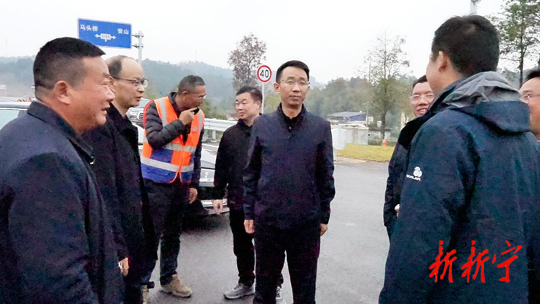 12月7日,县委副书记、县长彭洪兵到新新高速公路建设一线,调研项目进展情况,并看望慰问高速公路一线工作人员。县领导姚美春、陈静及相关部门负责人参加调研。