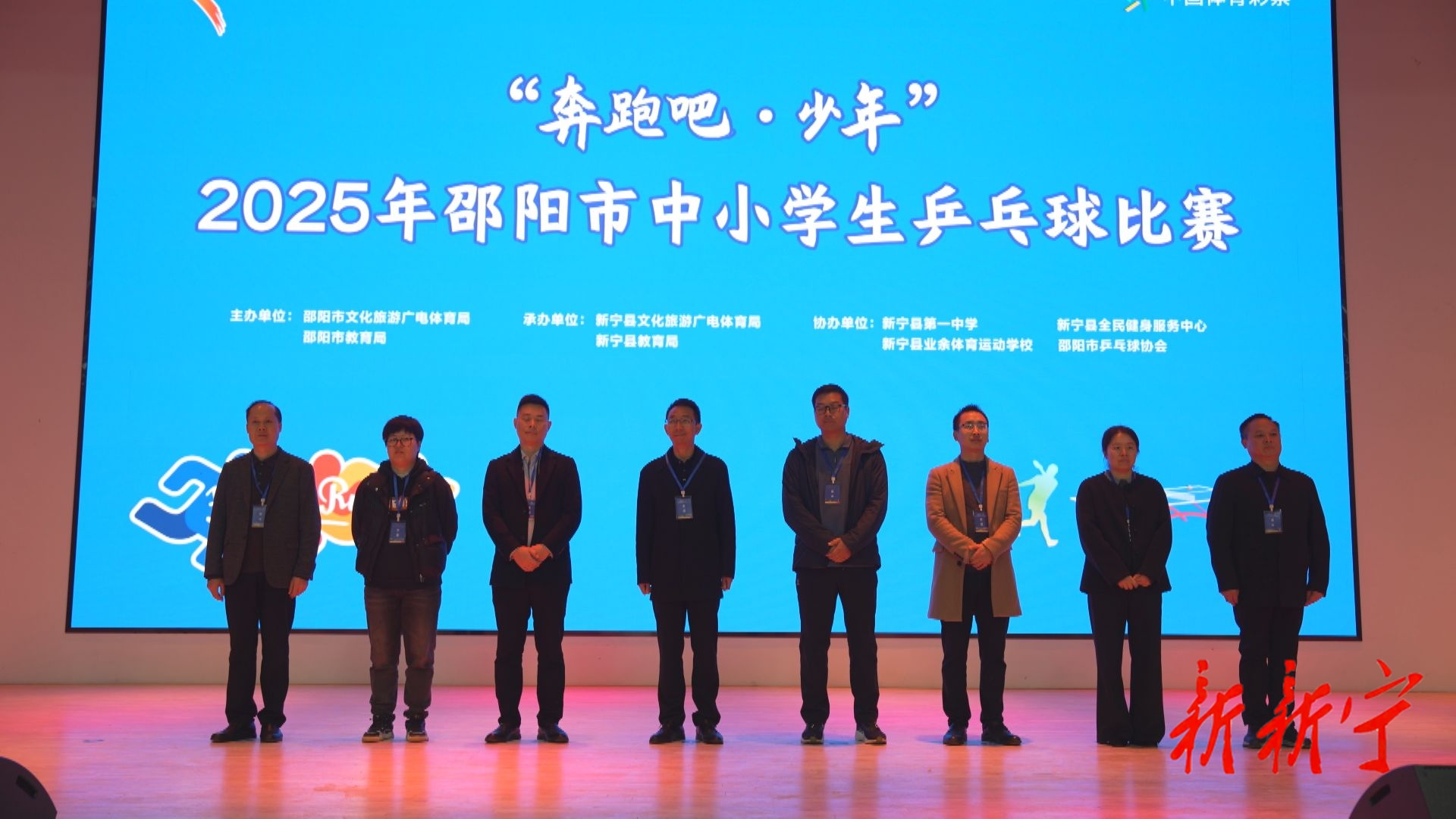 12月10日,“奔跑吧·少年”2025年邵阳市中小学生乒乓球比赛开幕式在县一中体育馆举行。县委副书记、县长彭洪兵出席并致辞,市文旅广体局党组成员、副局长赵柳银宣布比赛正式开始,副县长曾新锋主持开幕式。