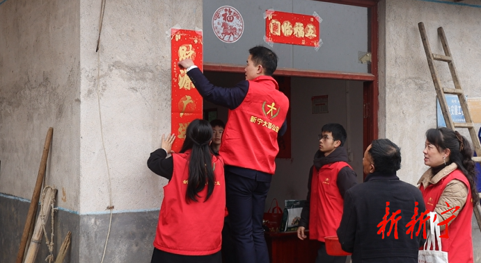 此外,志愿者们还将满载祝福的春联张贴在门框上,红纸墨香为困难群众家中增添了浓浓年味。每到一户,志愿者们都与困难群众亲切交谈,了解生活需求,鼓励他们坚定信心、乐观生活。
