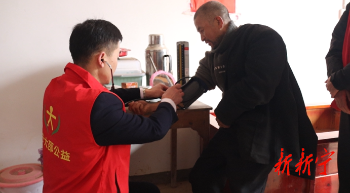 在春风社区,志愿者们带着米、油及生活用品来到困难群众家中,逐户走访慰问了三户困难家庭。随行医护人员为每户家庭的老人认真听诊、测量血压,并根据健康情况赠送日常必备药品,耐心叮嘱用药注意事项。