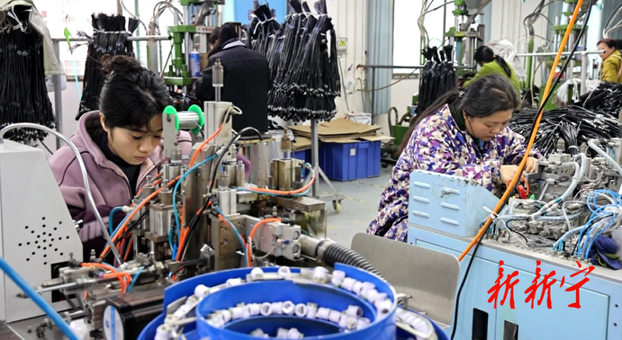 在新宁县鑫鑫电子有限公司生产车间内,同样是一派热火朝天的景象。芯线押出机、外被押出机等机器连续高效运转,一卷卷电子线材精准成型。工人们坚守岗位、细致操作,有序完成线材检测、端子压接、成品组装等工序,轰鸣的机器声与忙碌的身影交织在一起,奏响了新一年奋力冲刺的奋进乐章。