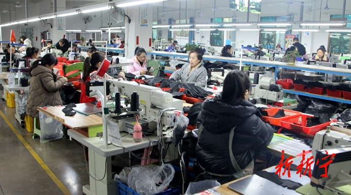 2月26日,在新宁县耀承鞋业有限公司生产车间里,缝纫机声此起彼伏、不绝于耳,一条条生产线全速运转、马力全开。工人们各司其职,熟练地进行鞋面裁剪、精准缝合、底料黏合等一道道工序,整个车间呈现出一派繁忙有序的生产景象。
