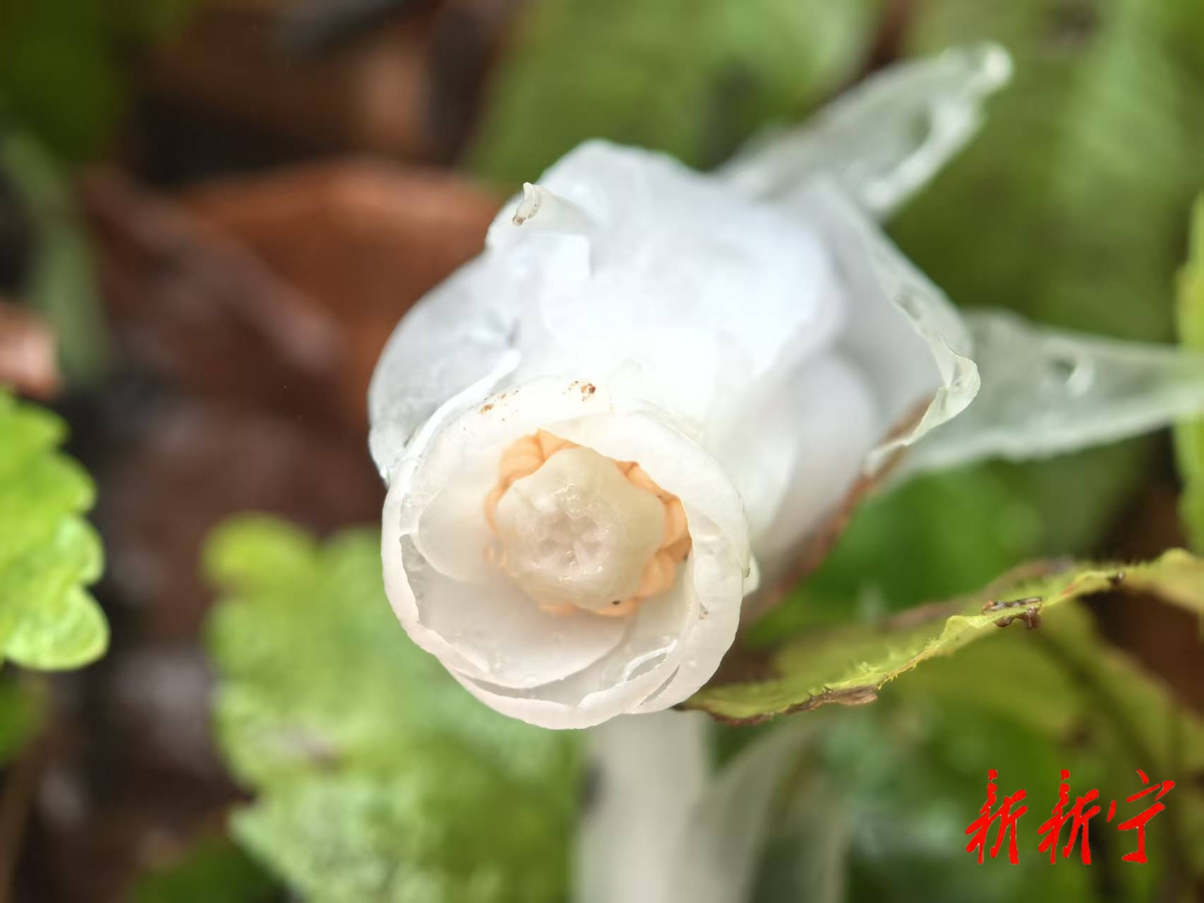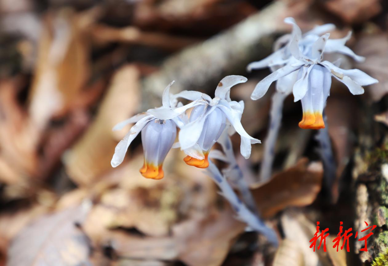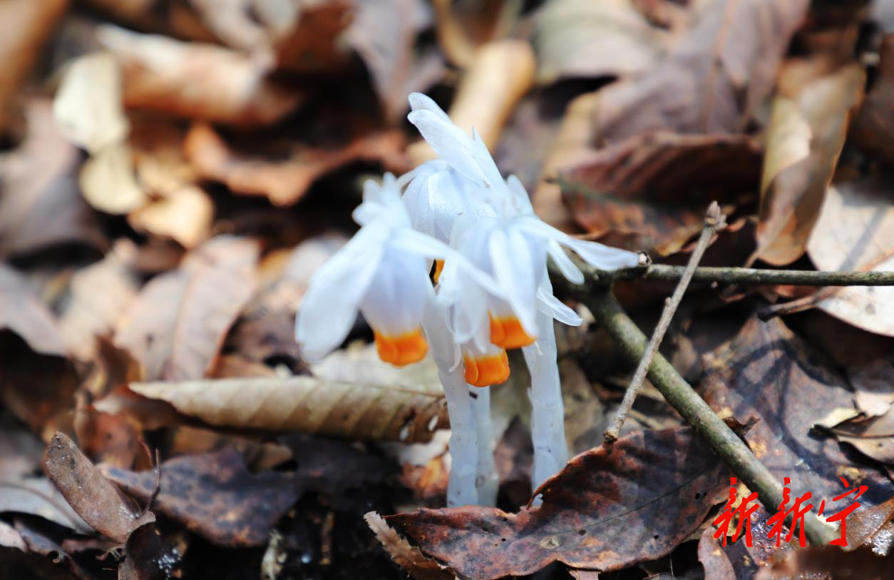 作为2026年正式发表的新物种,美冠水晶兰花瓣橙白相间,花期早、果实形态特殊,此次发现进一步丰富了区域珍稀植物资源。