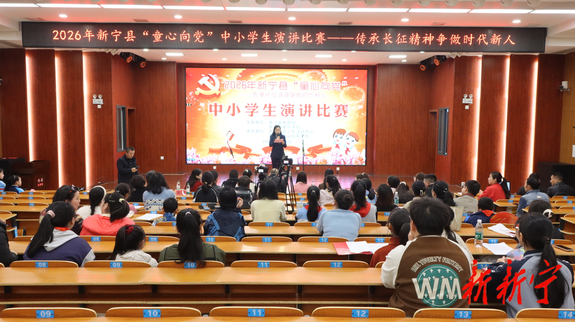 4月22日,2026年新宁县“童心向党”中小学生主题演讲比赛在崀山培英学校举行。经过层层选拔,来自全县各中小学的24名参赛选手同台竞技,以青春之声致敬长征精神,抒发争做时代新人的使命担当,展现奋发向上的青春风采。